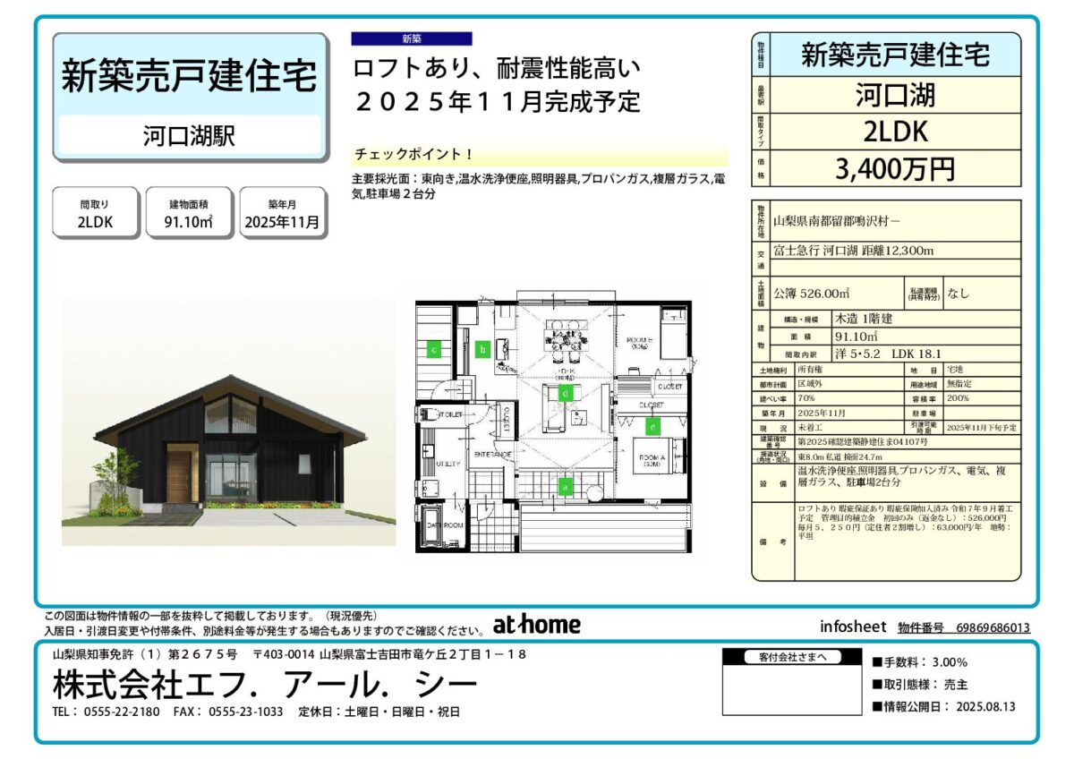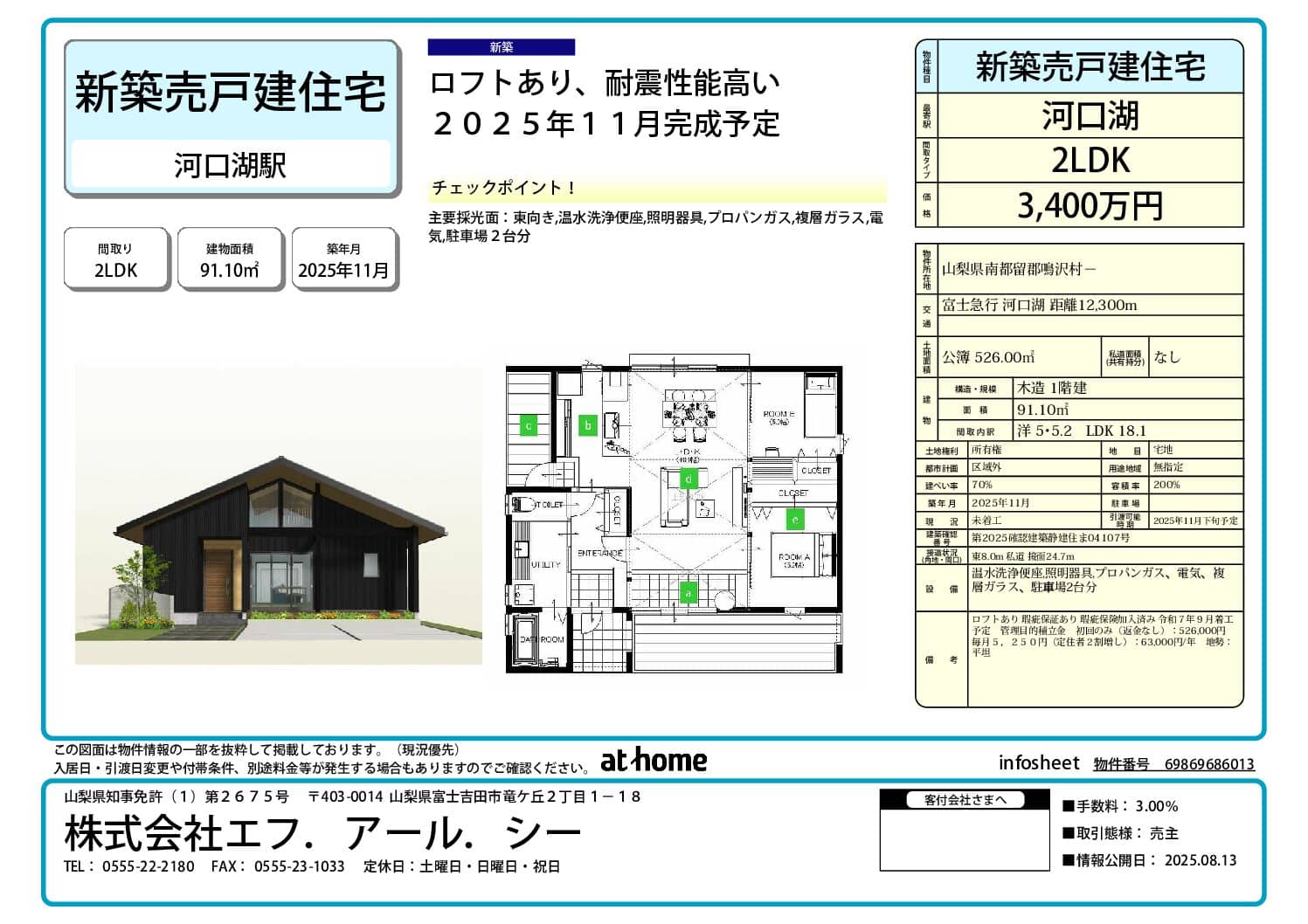 2025年12月中旬完成予定の平家の戸建てです。 光と風が通り抜ける軒下を愉しむ家。切妻屋根から広がる奥行きのある軒下空間。 そこに取り込まれた太陽の陽射しと風は大開口からLDKへ通り抜けます。 心地よい自然が存分に感じられる住宅となりました。 勾配天井と軒天は高さを揃えて家の中と外が一体となることで空間のつながりを演出。 内土間では視線を気にせず、まるでデッキにいるような開放感があります。 大開口を開くとウッドデッキと内土間がひとつの空間となり、趣味や生活シーンに合わ せて様々な使い方ができます。間取りは生活導線を最小限に抑えつつ、収納やユーティリティーを充実させました。 コンパクトながらも、快適な暮らしを実現する住まいです。 ゴルフ場に隣接した区画で静かに過ごせそうです。 外観パース・間取り図は変わる可能性があります。 令和7年9月より着工 間取り図の家具配置はイメージです。 実際には家具はつきません。※当該別荘地は民泊は認められておりません。