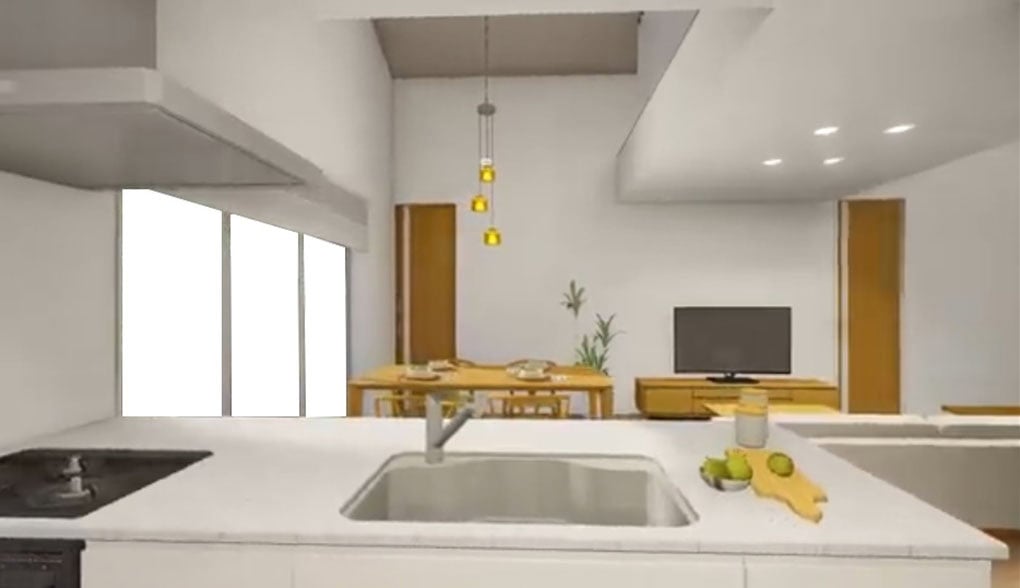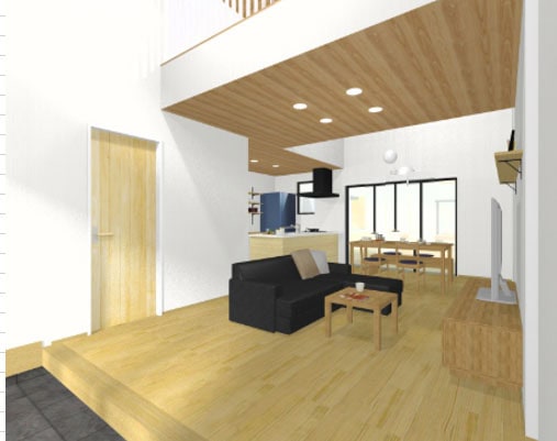 リビングと内土間と軒下空間を連ねて配置することで開放感を創り出しながら、それぞれの場所で過ごし方を愉しめる端正な佇まいの平屋プランです。